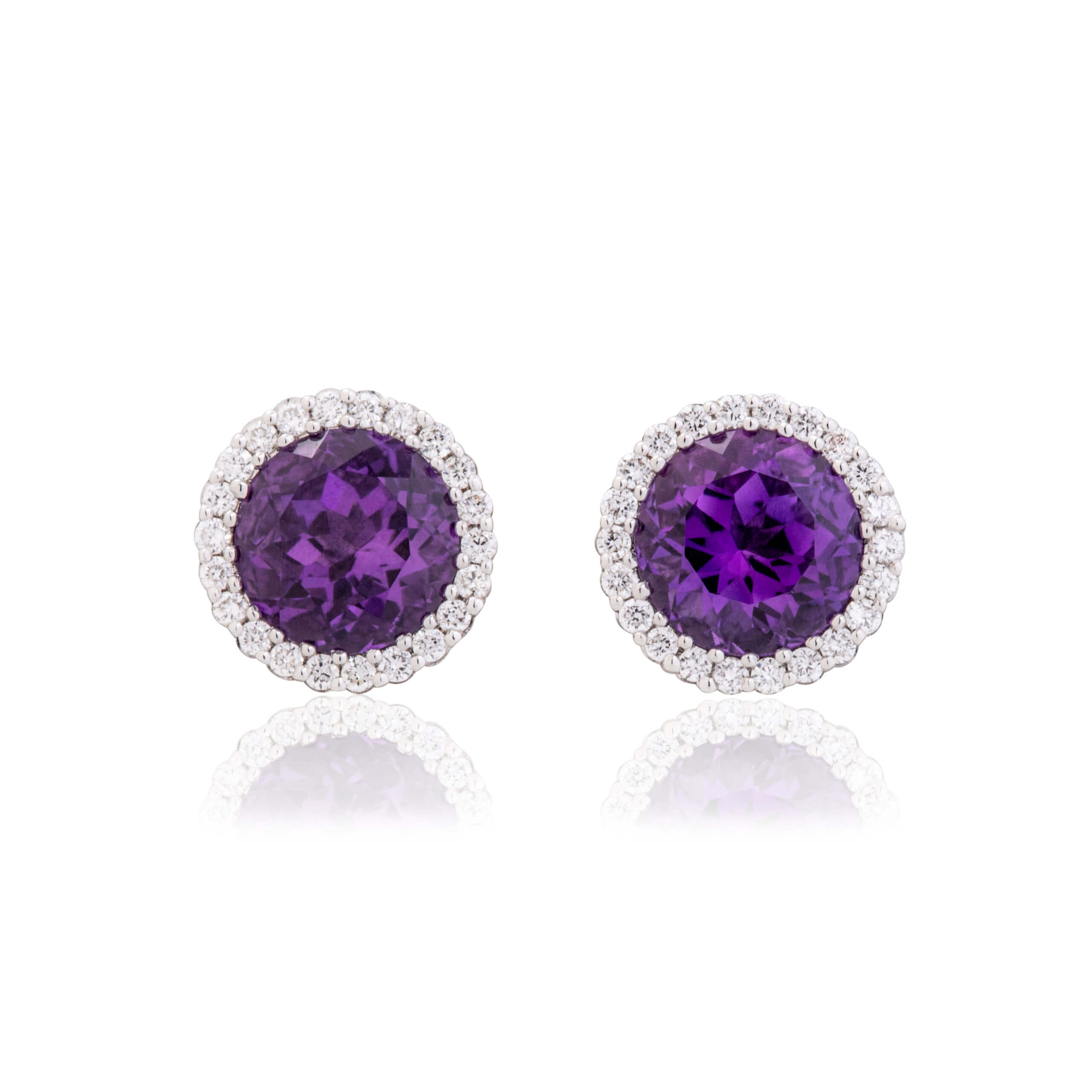 Amethyst and Diamond Halo Stud Earrings