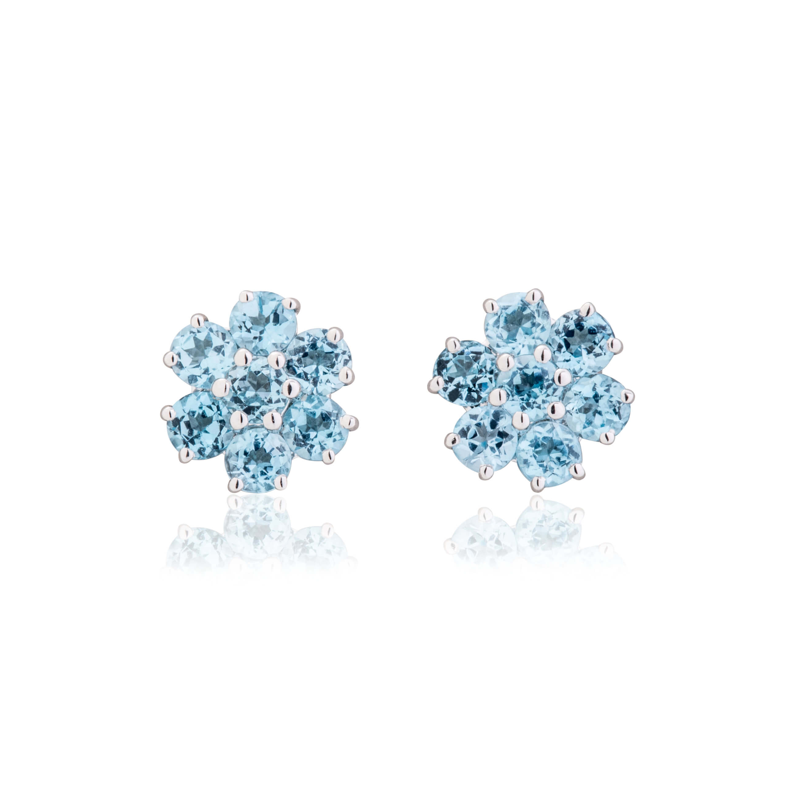Blue Topaz and White Gold Cluster Stud Earrings
