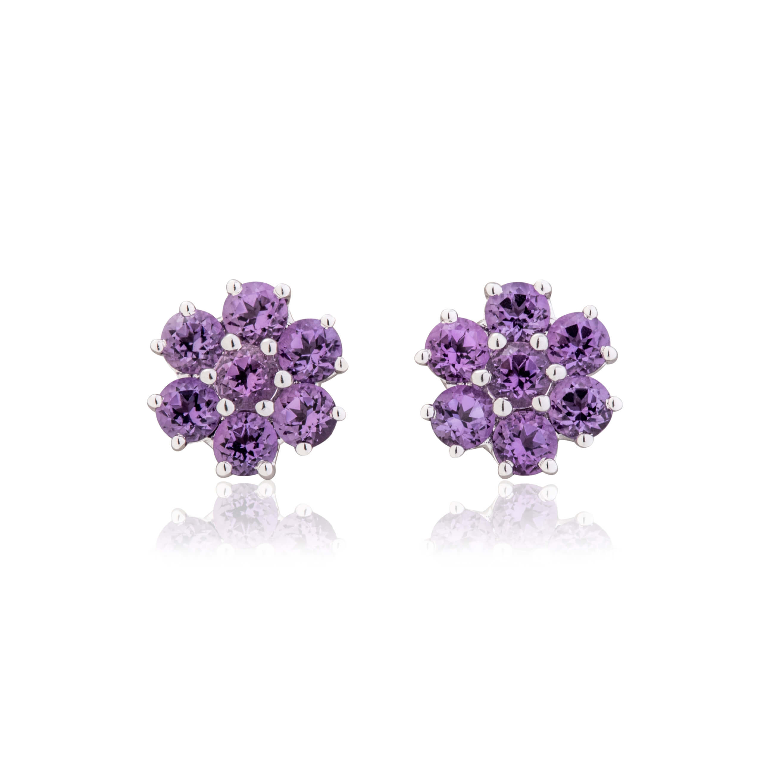 Amethyst and White Gold Cluster Stud Earrings