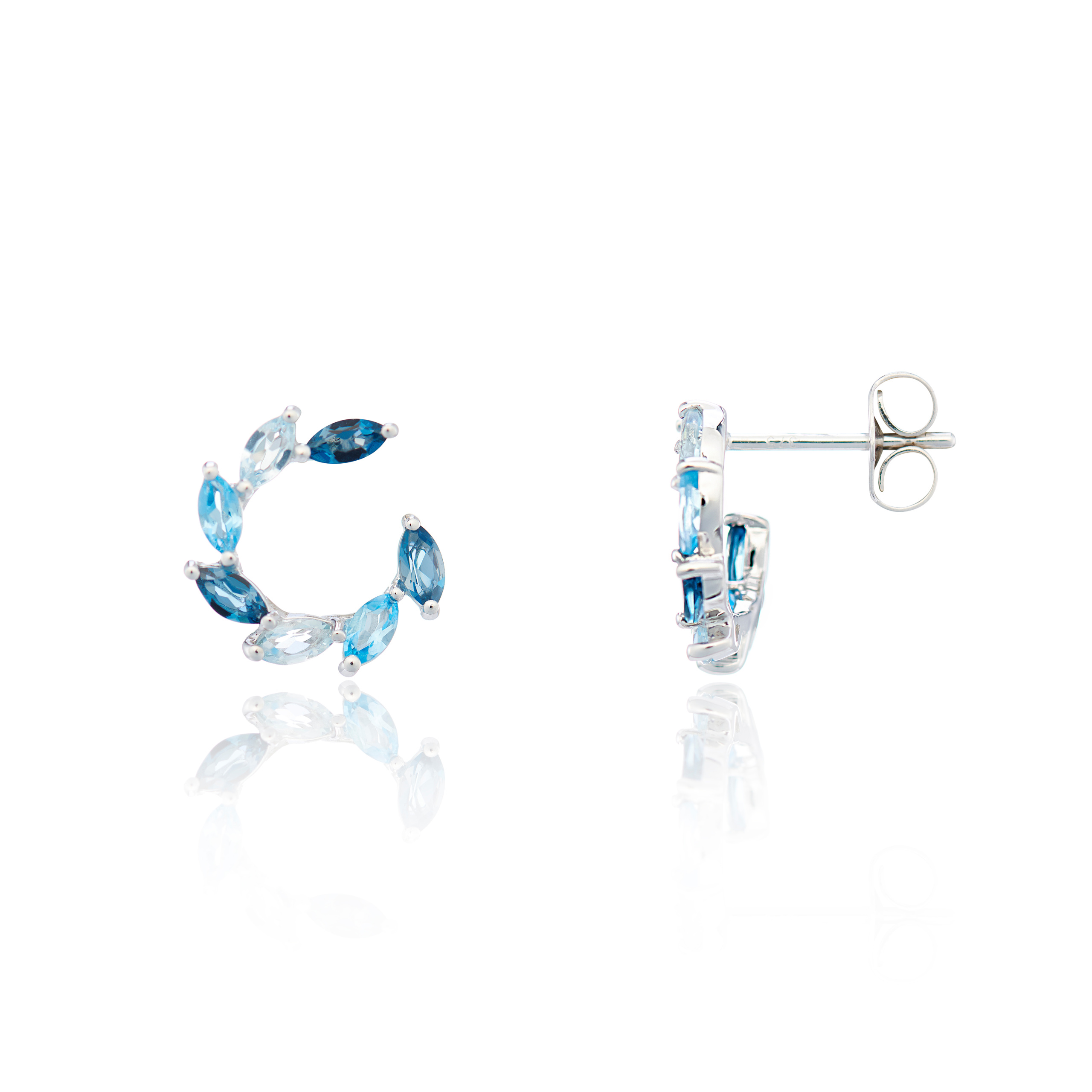 Blue Topaz and White Gold Curved Earrings