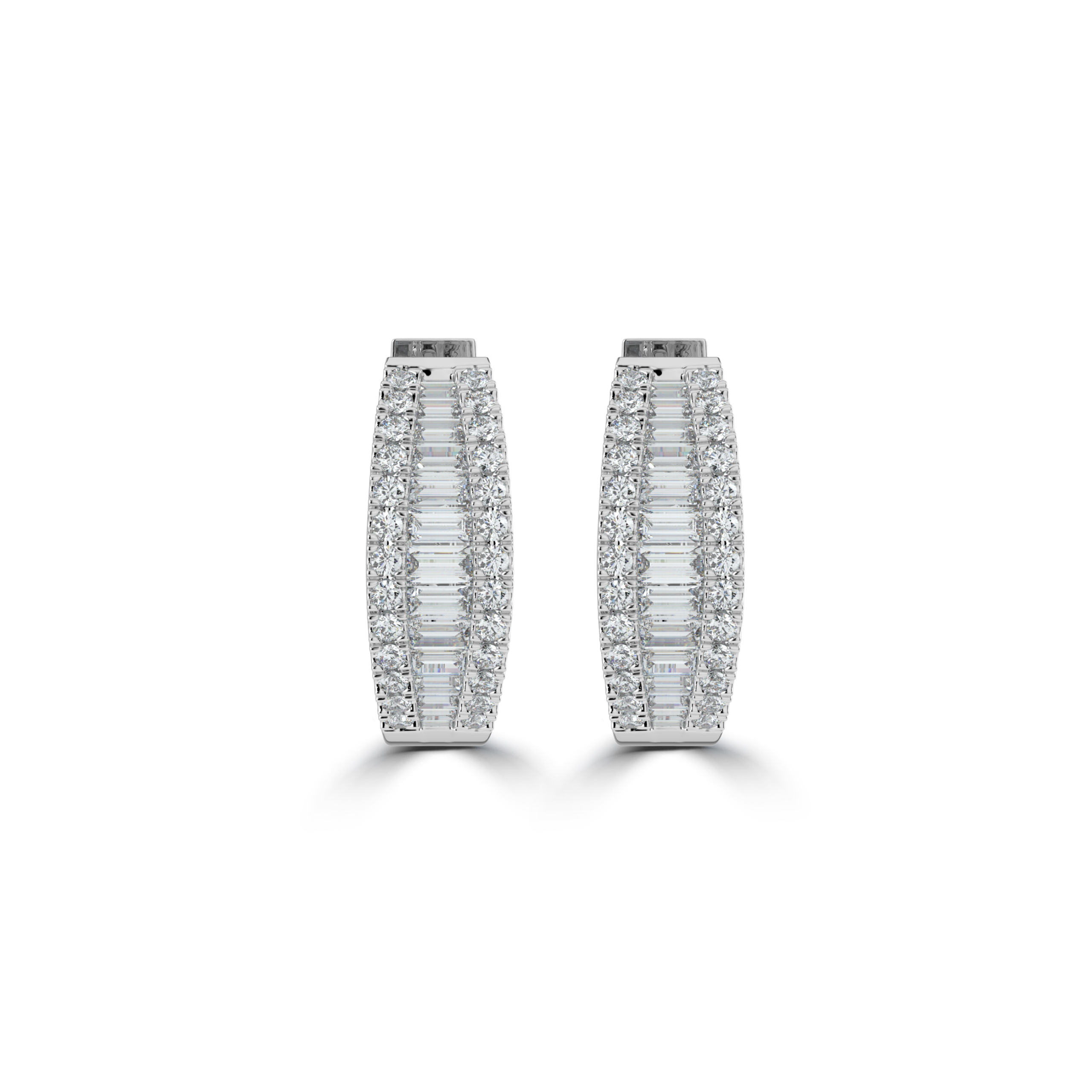 Baguette and Round Brilliant Cut 0.97ct Diamond Hoop Earrings