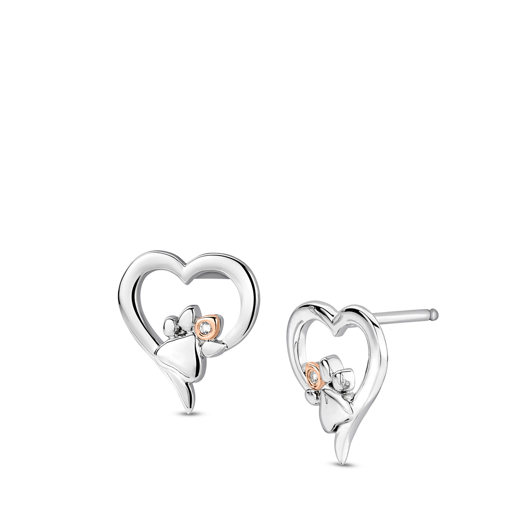 Clogau Paw Prints Sterling Silver Heart Topaz Stud Earrings
