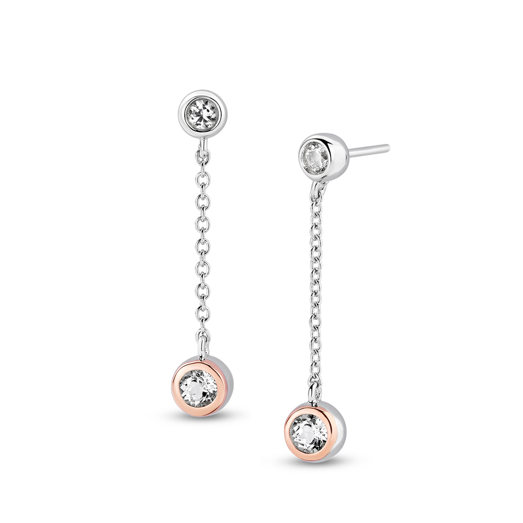 Clogau Celebration White Topaz Drop Chain Sterling Silver Earrings
