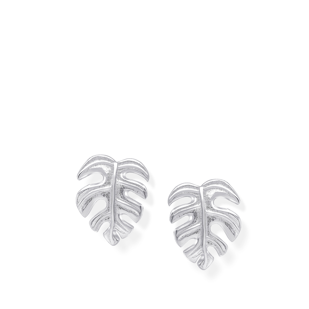 Swiss Cheese Leaf Monstera Muse Sterling Silver Stud Earrings