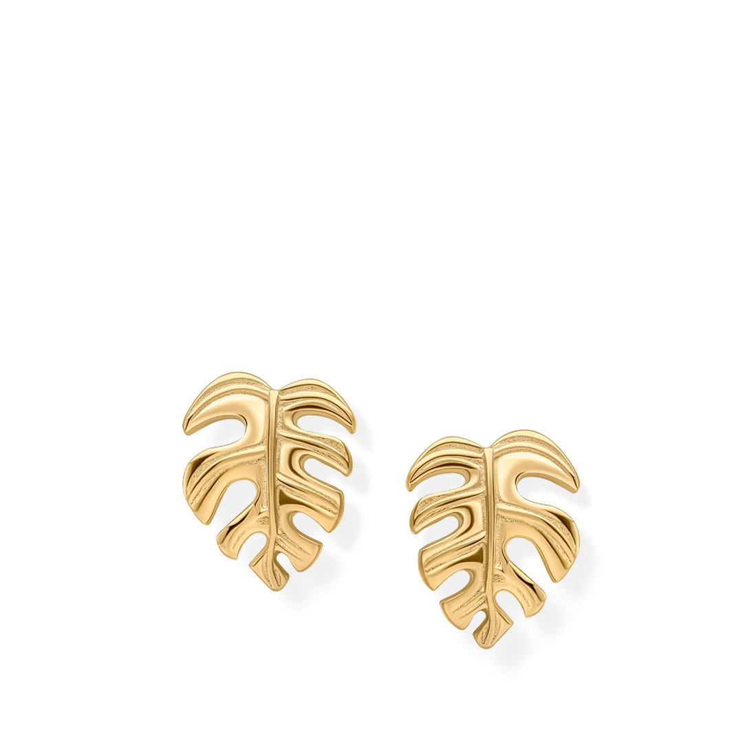 Swiss Cheese Golden Leaf Monstera Muse Sterling Silver Stud Earrings