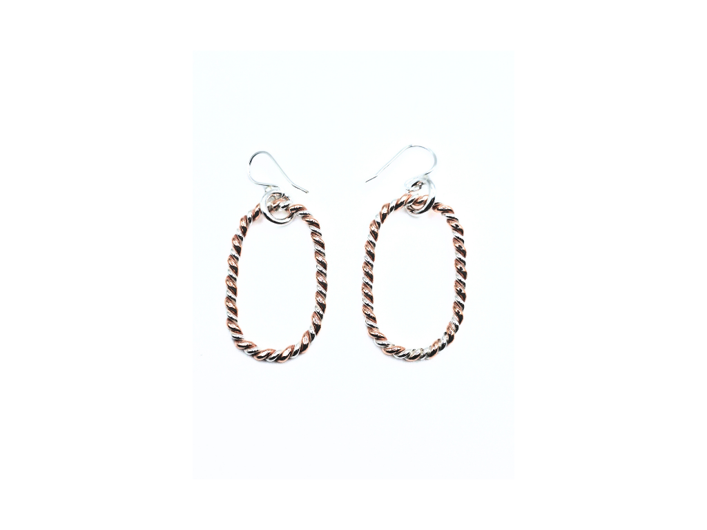 Copper & Silver Barley Twist Drop Earrings