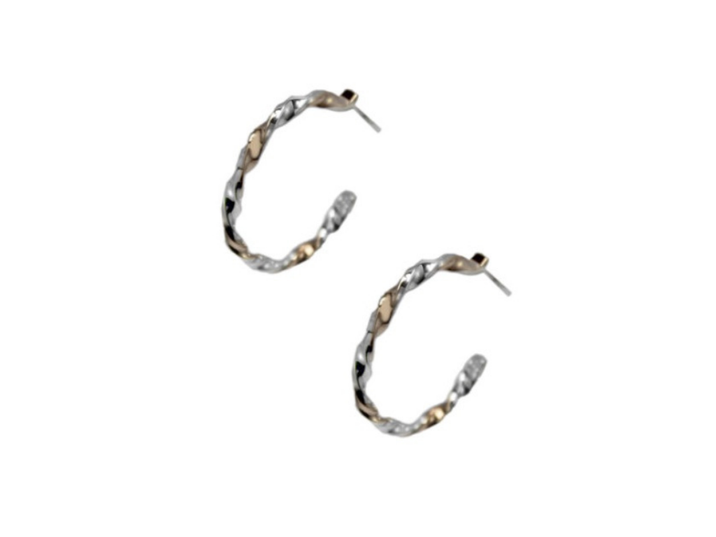 Copper & Silver Barley Twist Hoops